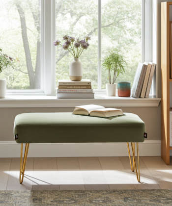 The smooth velvet upholstery in a soft sage green shade brings gentle colour without overpowering your décor. Additionally, slim golden hairpin legs give the piece a light, airy silhouette and introduce a subtle glam accent that pairs beautifully with both neutral and bold interiors.