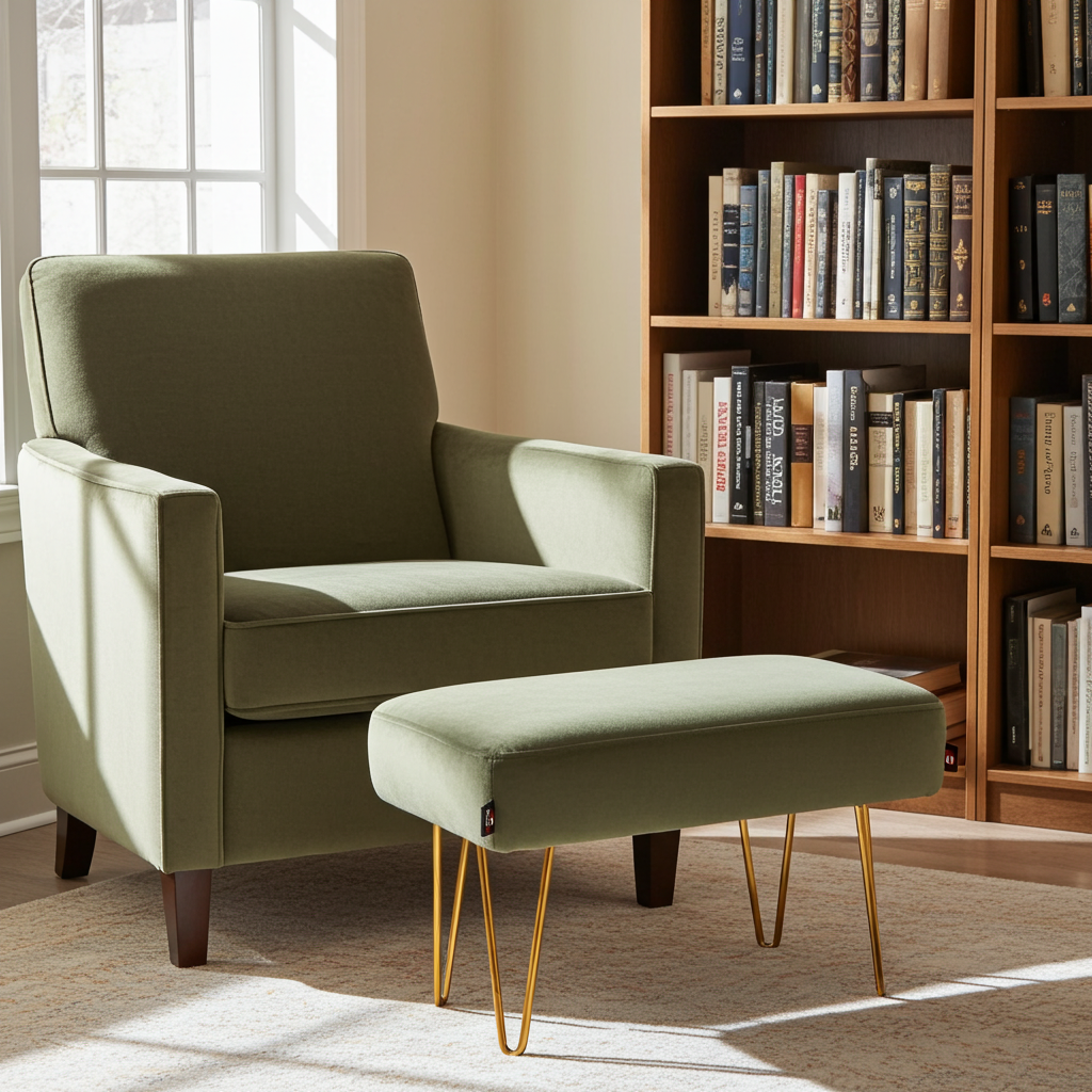 Elegant sage green velvet and gold legs
