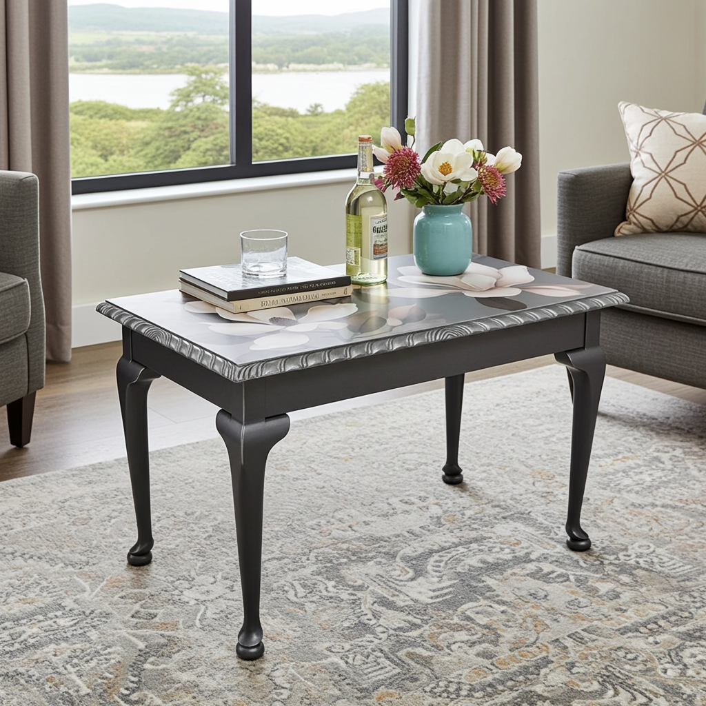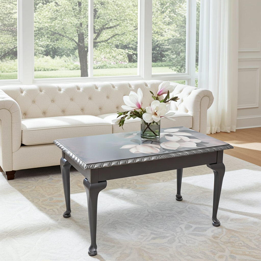 Blush Magnolia Coffee Table – Hand-Painted Floral Centerpiece for Elegant Living Rooms