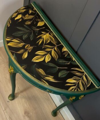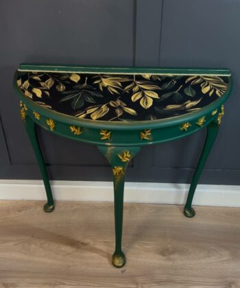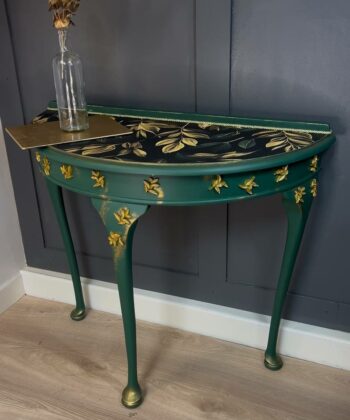 Golden Leaves Console Table – Elegant Green & Gold Hallway Accent Table