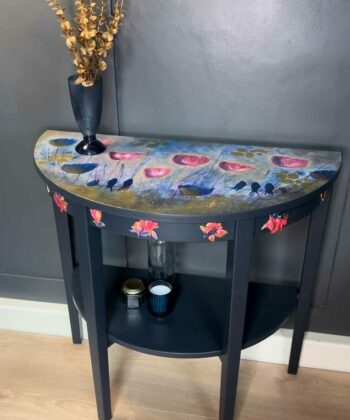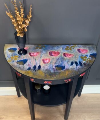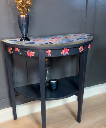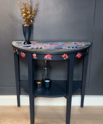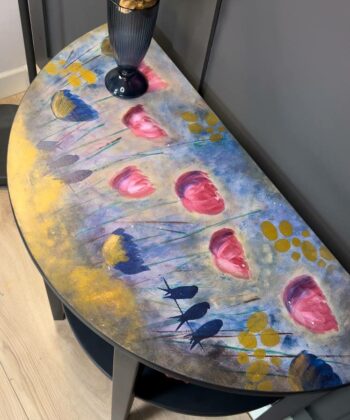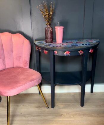 Crafted with meticulous attention to detail, this table measures 80x40x75 cm, making it an ideal choice for entryways, hallways, or as an accent piece in any living area. The semi-circular shape adds elegance, while the artistic tabletop serves as a conversation starter. A perfect addition to a modern or eclectic interior, the Midnight Garden Console Table combines craftsmanship and creativity for those who value unique, hand-finished furniture.