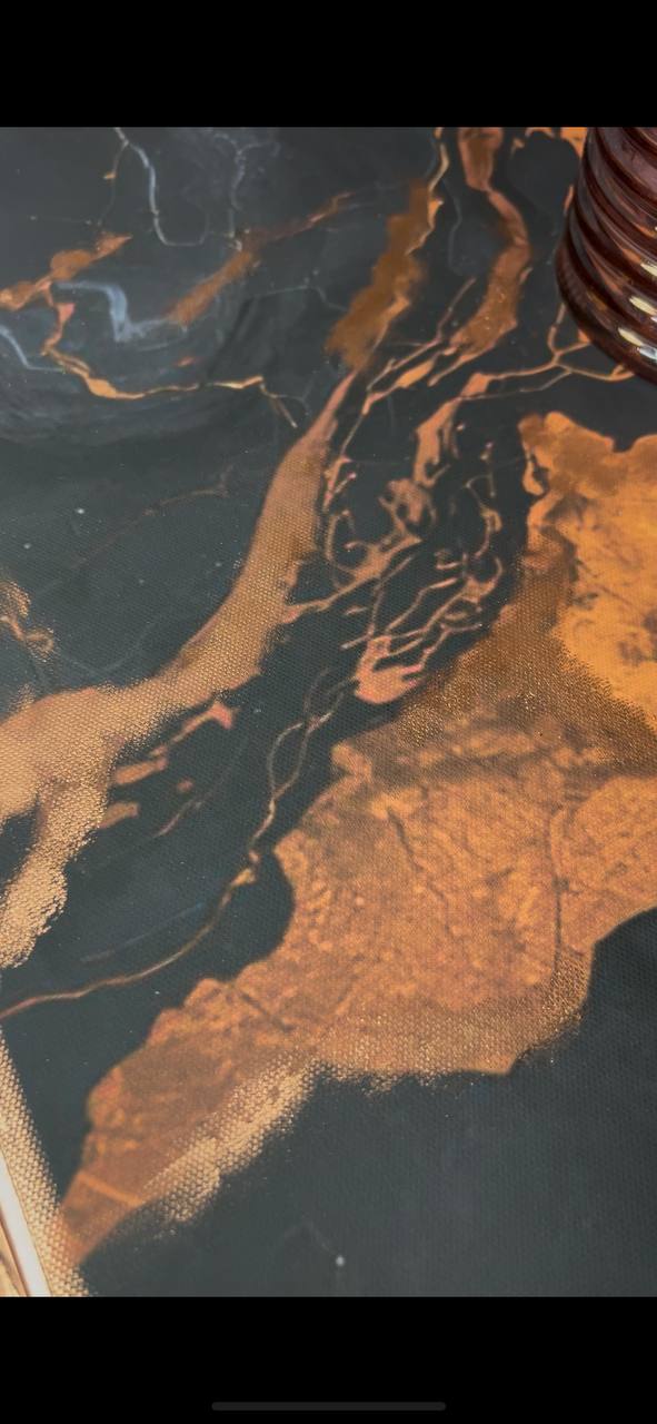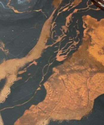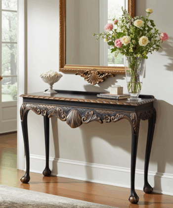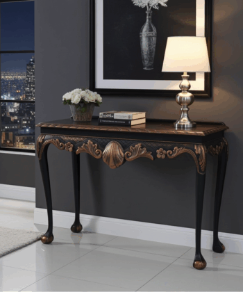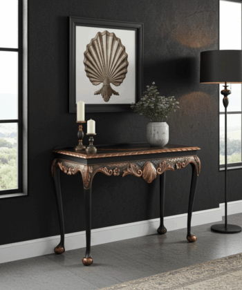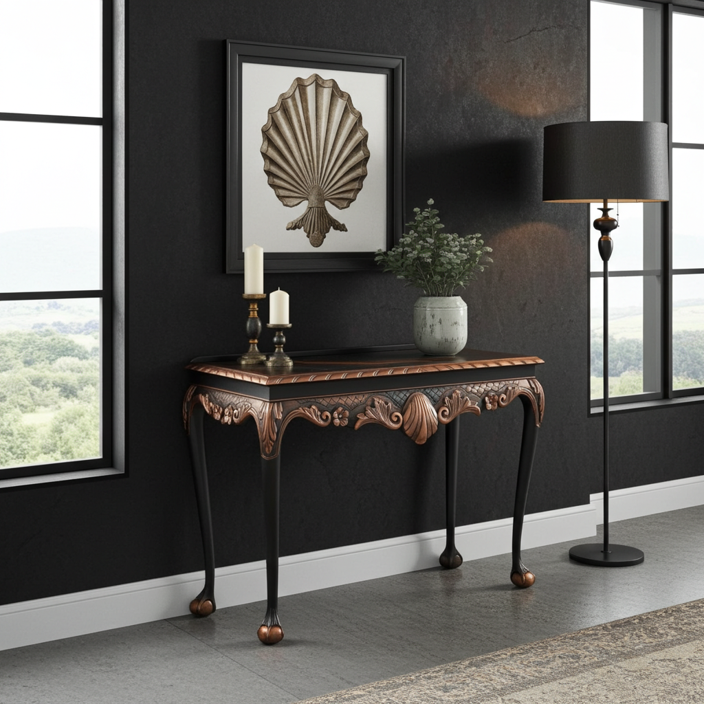 Regal Copper Shell Console Table – Hand-Restored Black and Copper Statement Piece with Durable Canva Top